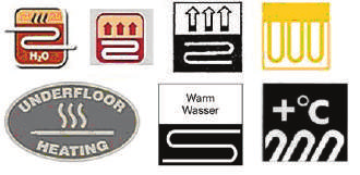 Лучше всего эффект тёплого пола ощущается при напольных покрытиях из материалов с высоким коэффициентом теплопроводности (керамическая плитка, бетон, наливные полы, безосновный линолеум, ламинат и т. п.). В случае использования ковролина, он должен иметь знак пригодности для использования на тёплом основании (рис. 20).
