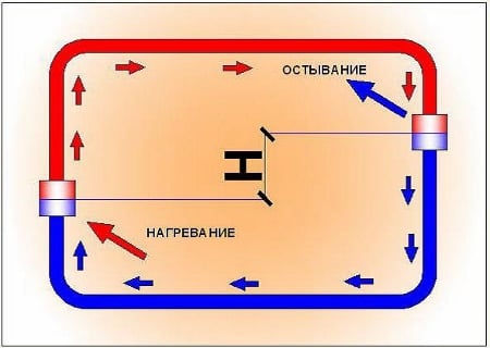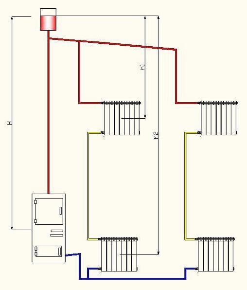 Рис. 2. Пример двухтрубной системы отопления с естественной циркуляцией