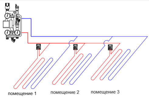 В связи с этими двумя факторами неизменным атрибутом системы напольного отопления является узел смешения.