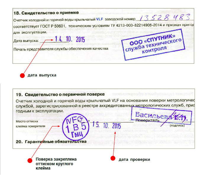 Рис. 3. Отметки в паспорте квартирного водосчетчика