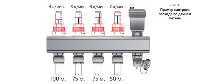 Расход воды на четвертой петле должен быть: (50/100) · 4 = 2 л/мин (рис. 4).