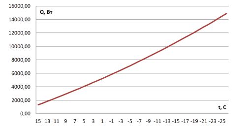 Рис. 2. Зависимость необходимой тепловой мощности от температуры наружного воздуха