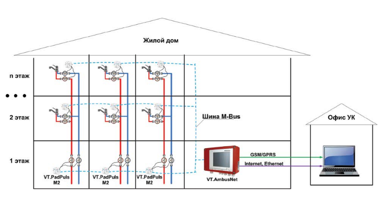 Рис. 1. Общий вид сети на базе оборудования проводной система сбора и обработки данных VALTEC M-BUS