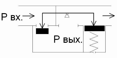 Принцип действия квартирных регуляторов давления основан на уравновешивании усилий, создаваемых давлений на входе и выходе за счет отношенияплощадей, на которые воздействуют эти давления (рис. 3).