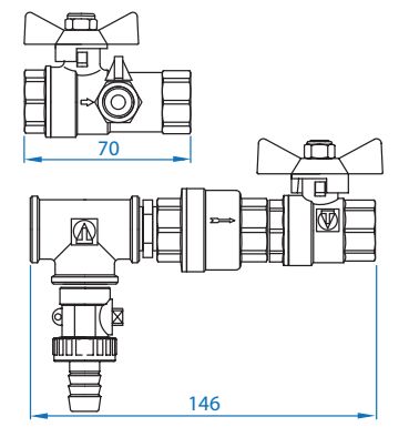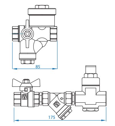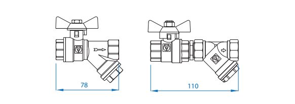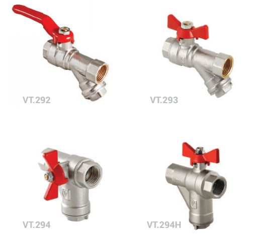 - VT.293 – шаровой кран с косым фильтром и рукояткой «бабочка»;