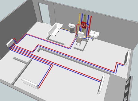 - сократить длину трубной разводки для снабжения здания необходимо всего лишь три магистральных трубопровода (Т1, Т2, В1);