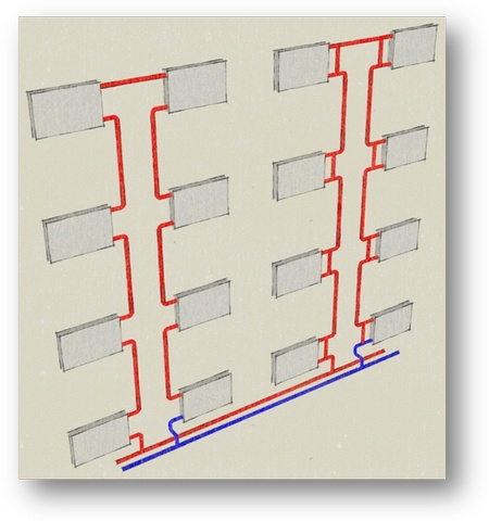 Рис. 3. Двухтрубная система отопления с нижней подачей теплоносителя