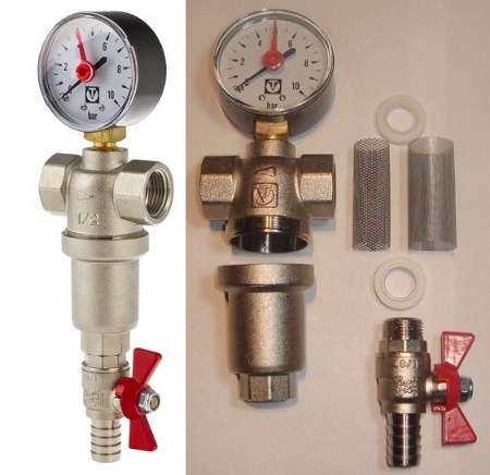 На фильтре VT.385 вместо пробки может быть установлен дренажный кран (1/2"), что упрощает процесс его промывки.