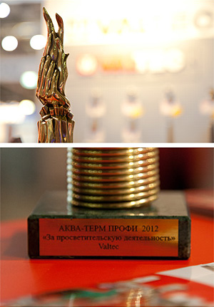 В «копилке» VALTEC уже есть призы «Аква-Терм Профи» в номинации «Марка года». Теперь к ним добавилась и награда за просветительскую деятельность. В течение 2011 г. наши специалисты провели более 200 обучающих семинаров по всей России, в около 70 городах. Их посетили свыше 5 тысяч человек!