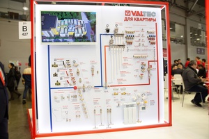 В частности, широкий ассортимент VALTEC, системность и вариативность предлагаемых решений был в полной мере продемонстрирован стендом «VALTEC для квартиры». Различные модели шаровых кранов, фильтров механической очистки, редукторов давления, распределительных коллекторов и коллекторных фитингов, клапанов и узлов для радиаторов, полипропиленовых труб были представлены максимально наглядно, каждая – на «своем» месте в квартирной системе водоснабжения и отопления.