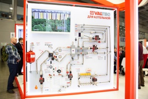 Стенд «VALTEC для котельной» был адресован всем, кто интересуется оборудованием для отопления индивидуального дома. Он демонстрировал обвязку котла, выполненную с использованием труб из нержавеющей стали, укомплектованную запорной, регулирующей арматурой, арматурой безопасности, циркуляционными насосами и автоматикой. Ключевыми элементами обвязки стали гидравлическая стрелка и 4-ходовой смесительный клапан с «умным» сервоприводом.