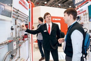 Одна из задач, которую компания поставила перед собой на выставке этого года, – подчеркнуть вариативность своих предложений. Один и тот же узел – например, ввод водопровода в квартиру или обвязка радиатора – может быть укомплектован элементами, отличающимися друг от друга по набору функций, характеристикам и цене. Это позволяет предложить заказчику оптимальную для него комплектацию.