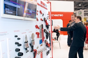 Отдельным стендом в рамках экспозиции VALTEC демонстрировались на выставке трубопроводные системы и монтажный инструмент. Здесь были представлены металлополимерные, полипропиленовые трубы, трубы из сшитого полиэтилена и полиэтилена повышенной термостойкости, трубы из нержавеющей стали, комплекты сварочного оборудования, ножницы и резаки, ручной и электрический пресс-инструмент.