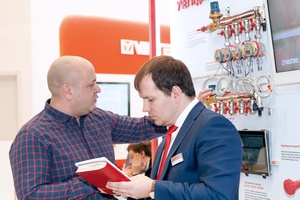 Кроме новинок 2019 года, посетители выставки не упускали возможности внимательно изучить изделия, поступившие в продажу во второй половине 2018-го. В том числе – квартирные станции VT.NM, уже активно задействованные в столичных и региональных программах домостроения, автоматические воздухоотводчики с рычажным механизмом VT.502.NA, VT.502.NV, угловые клапаны для нижнего подключения радиаторов VT.345.NA, VT.345K.NA, надвижную муфту из нержавеющей стали VTi.904.I, другую продукцию.