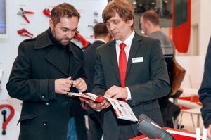 В непосредственной близости со стендом «Трубы и инструменты VALTEC» была организована отдельная выставочная стойка, где каждый желающий мог опробовать в действии инструмент для резки труб и монтажный пресс-инструмент VALTEC. Посетители выставки с удовольствием пользовались такою возможностью.
