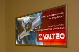 На пути от станции метро Мякинино до выставочного павильона приехавших на выставку посетителей встречали рекламные панно VALTEC с девизом: «Если вы никогда не задумывались, как это работает, значит вы выбрали надежную инженерную сантехнику». Этот слоган подразумевает, что продукция VALTEC ни в коем случае не должна оставаться для покупателей «черным ящиком». Напротив: наши технические специалисты готовы в подробностях рассказывать, как работает каждое из представленных на стенде изделий, и объяснить, чем именно обеспечена их надежность, ответить на любые вопросы по их применению.