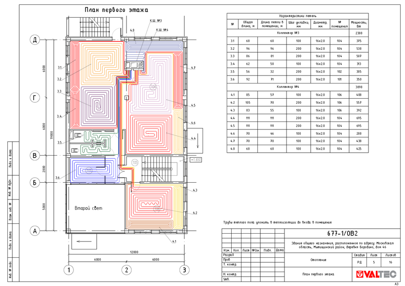 - Проект системы отопления на основе водяного теплого пола
