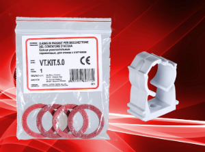 - набор уплотнительных колец VT.KIT.5.0. В ремонтный комплект № 5 входят четыре паранитовые прокладки для сгонов к счетчикам воды и тепла. Пригодятся в случае повреждения или утери штатных уплотнителей резьбовых фитингов с накидной гайкой на 3/4”;