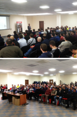 В практической части занятия собравшимся было предложено своими руками опрессовать фитинги полимерных трубопроводов и трубопроводов из нержавеющей стали. В семинаре приняли участие более 120 человек.