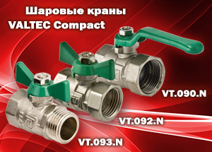 Чтобы в подобных ситуациях заказчики не тратили лишнего, торговая марка VALTEC предлагает шаровые краны «облегченной» серии VALTEC Compact. По используемой латуни, материалу седельных уплотнений (тефлон) и технологическим решениям (алмазная полировка затворного шара и штока и др.) они аналогичны кранам VALTEC BASE. Их отличают неразборный сальниковый узел, материал уплотнения штока – EPDM, стандартный (а не полный) проход. Минимальный ресурс шаровых кранов VALTEC Compact – 4 тыс. циклов.