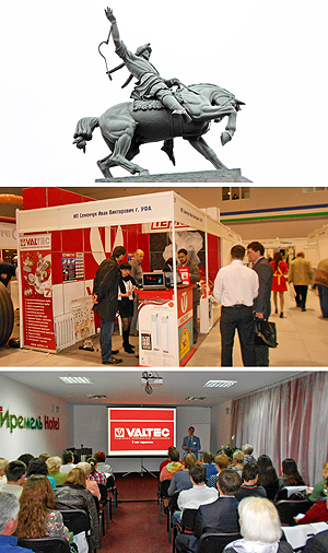 Торговую марку VALTEC представлял на выставке наш уфимский партнер – ИП Семенчук И.В. (сеть магазинов «Мастер Сантехник»). На оформленном в фирменном «валтековском» стиле стенде можно было познакомиться с традиционной продукцией бренда, новинками ассортимента, получить техническую консультацию, посмотреть на мониторах компьютеров интернет-каталог и видеоролики по применению изделий. В экспозиции демонстрировались квартирные станции VALTEC Control SAT, системы полипропиленовых трубопроводов VALTEC, включая комплекты для сварки труб и фитингов, другое оборудование.
