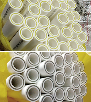 Cо второй половины октября на смену полипропиленовой трубе VALTEC PP-FIBER PN 25 с армирующим слоем желтого цвета в продажу поступит ее новая модификация с серым армирующим слоем (на фото представлены текущая и обновленная версии трубы).