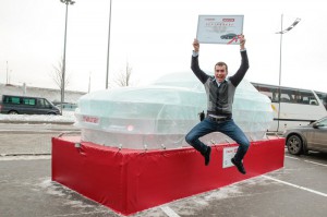 По итогам конкурса «Догони BMW!», который проводился среди дистрибьюторов продукции VALTEC, представителю компании «Группа «Новатор» из Иркутска, была символично «вручена» ледяная копия новенького BMW 3, который победители получат у себя в Сибири.
