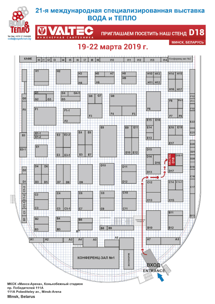 Уважаемые друзья! Приглашаем посетить стенд VALTEC на 21-ой международной специализированной выставке «Вода и тепло 2019» в Минске. Выставка пройдёт с 19 по 22 марта в МКСК «Минск-Арена» (пр. Победителей, 111 А).