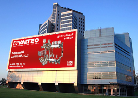 Эффективность наружной рекламы определяется правильностью выбора места ее размещения, вида носителя, дизайном и содержанием. Средства наружной рекламы VALTEC созданы профессионалами с учетом восприятия городской аудитории, перегруженной информацией. Партнерам обеспечивается дизайнерская поддержка и помощь в планировании рекламной кампании.