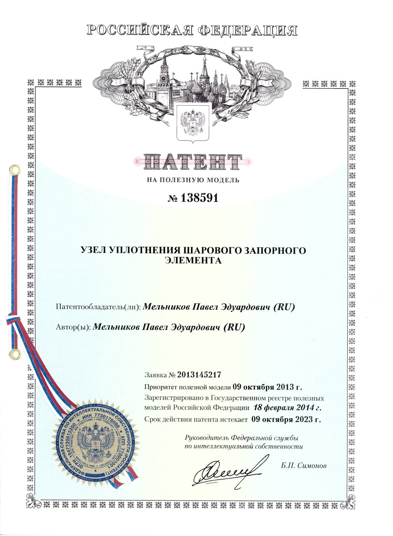 Патент № 138591. Автор: Мельников Павел Эдуардович.