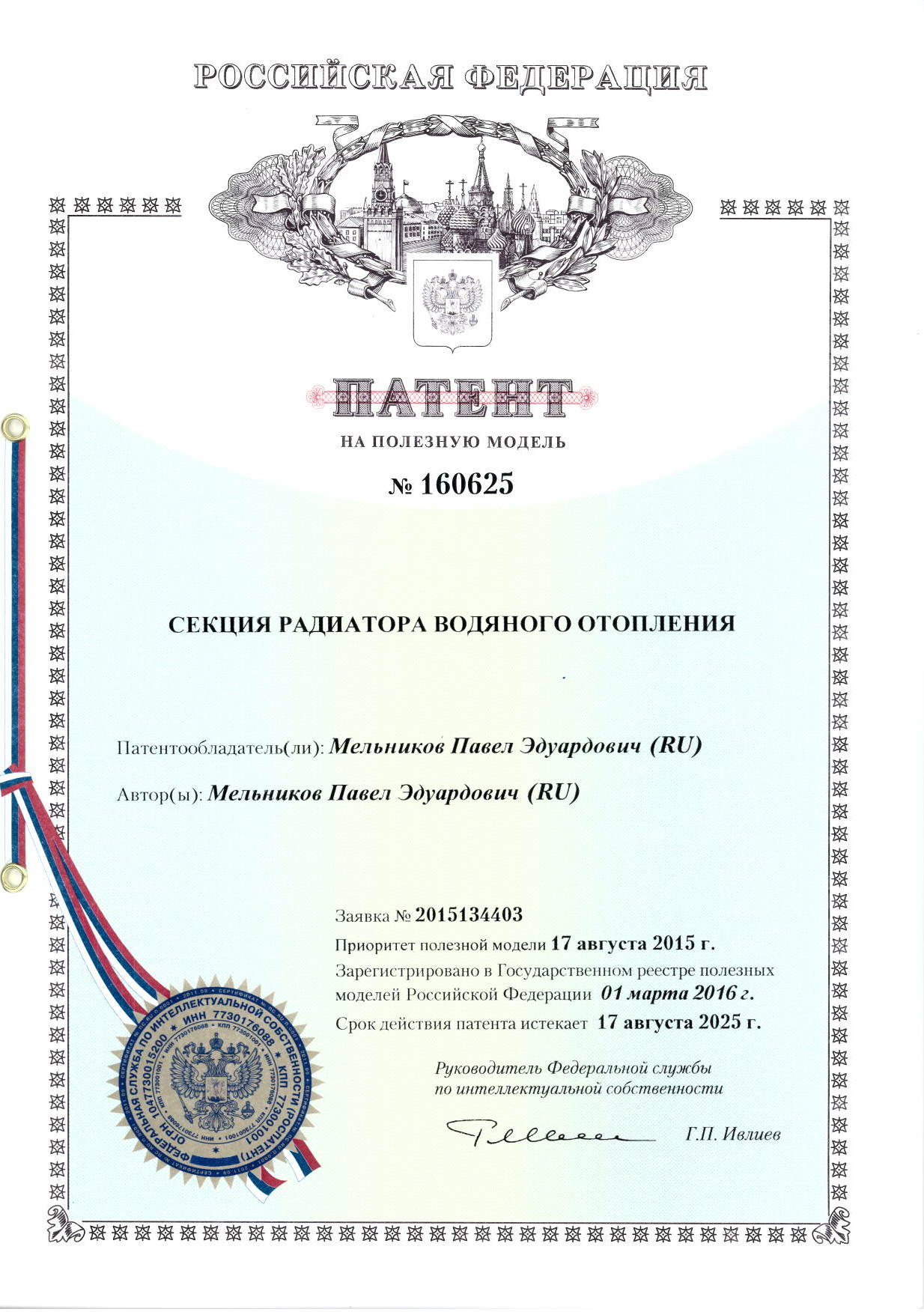 Патент № 160625. Автор: Мельников Павел Эдуардович