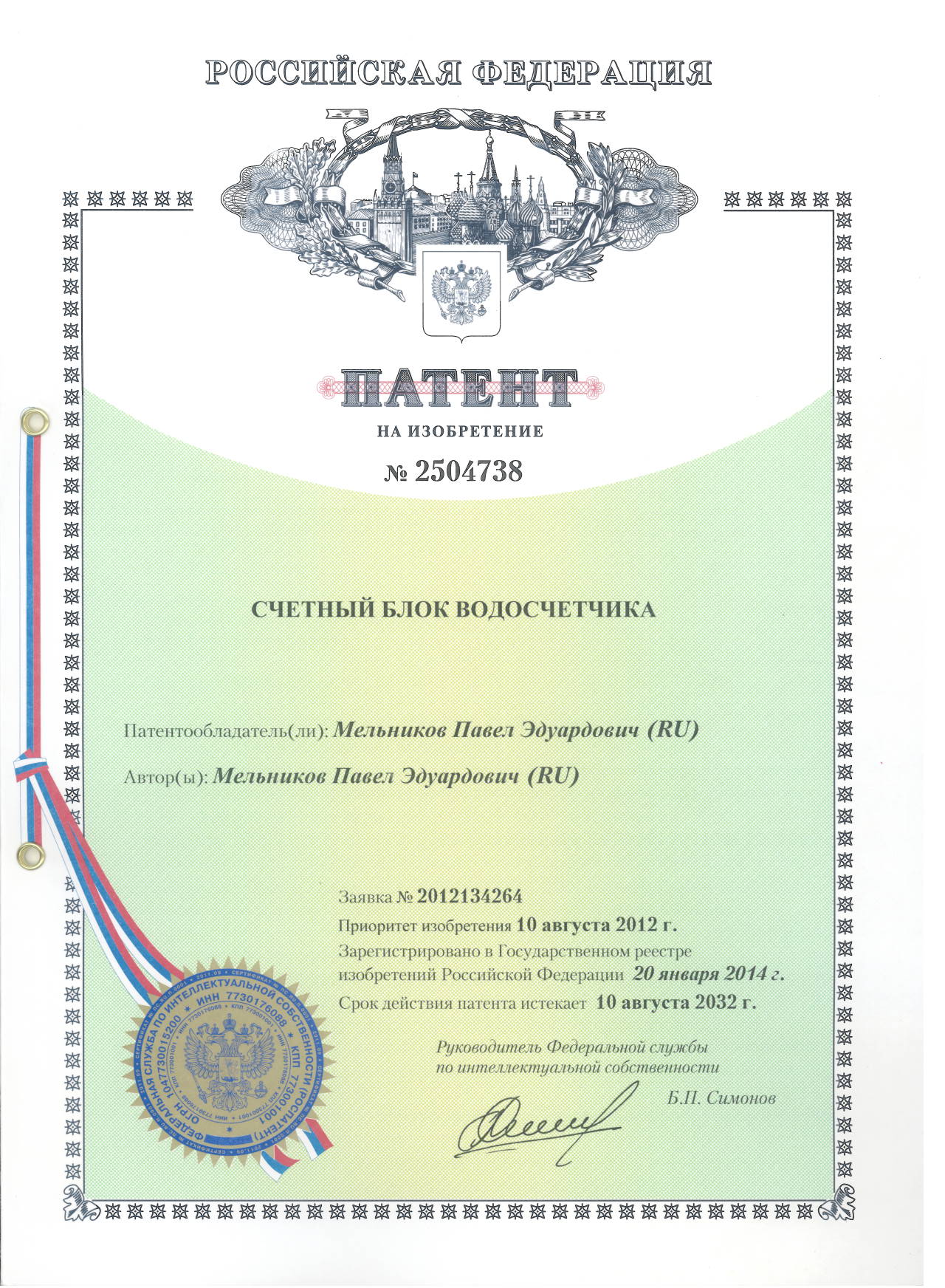 Патент № 2504738. Автор: Мельников Павел Эдуардович
